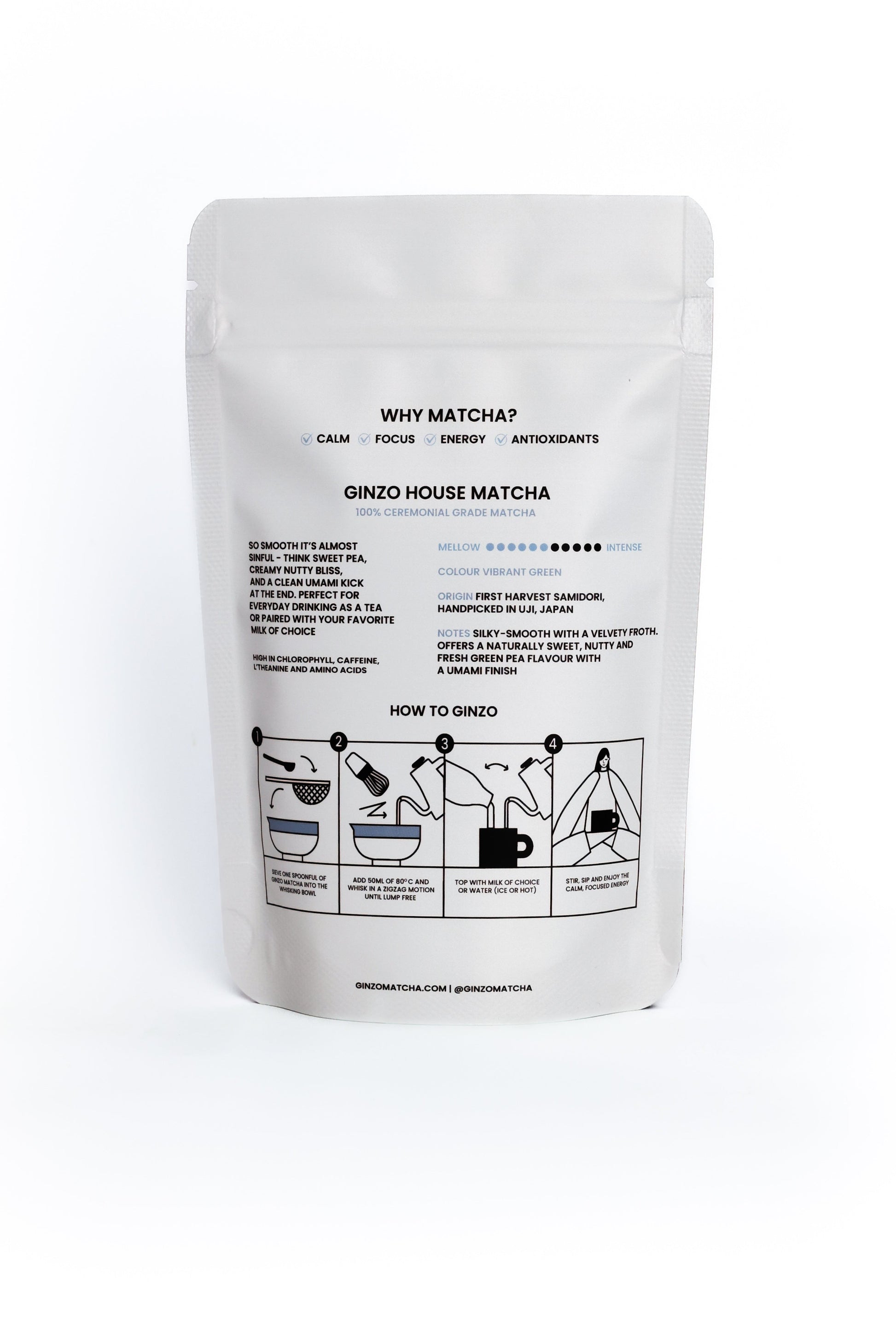 Introducing Ginzo’s signature ceremonial grade matcha — a signature blend crafted exclusively from the Samidori cultivar, grown in the tea fields of Uji, Japan.